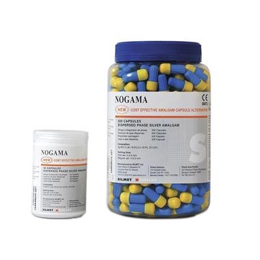 Nogama Amalgam Alloy is an admix of spherical, copper-silver eutectic particles and lathe-cut conventional alloy, which provides enhanced physical properties and a high resistnace to corrosion. It is available in 1 or 2 spill and fast or regular set formulations.