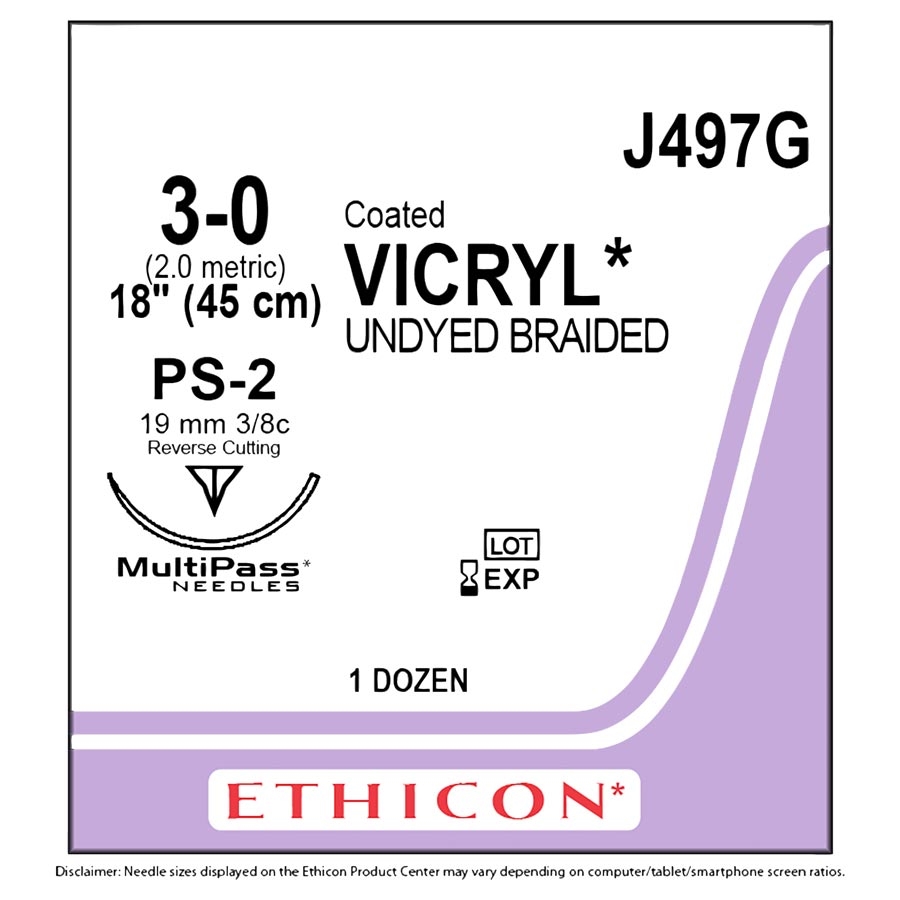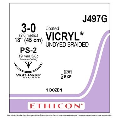 Ethicon PS2 3-0 18" Plain Braid 12/Box