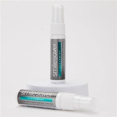 Smilesaver® is a cleansing and freshening spray for all removable oral devices, including orthodontic aligners. It helps improve patient experience and oral health while contributing to better treatment outcomes. Smilesaver helps eliminate bacteria from oral appliances and prevents buildup of biofilm that reduces unpleasant taste and odors. It also helps prevent harm to tooth enamel and gums from devices that encapsulate the dentition and are worn for extended period of times.